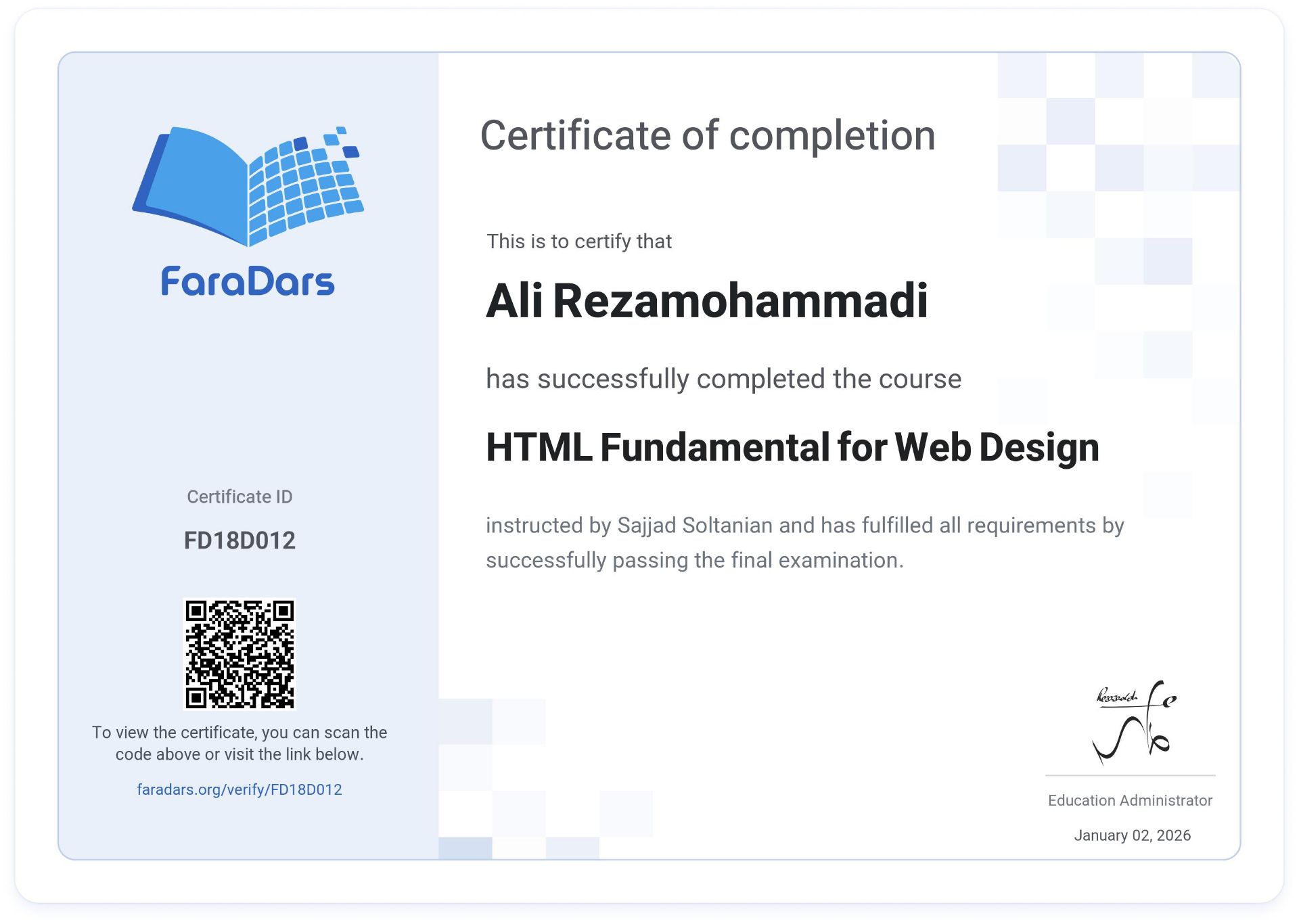 من علی رضامحمدی هستم، طراح اپلیکیشن های اندرویدی و توسعه دهنده وب در طراحی وبسایت های مدرن، به کیفیت تجربه کار اهمیت میدهم و در زبان های از جمله python , Html , css , php حرفهای میباشم